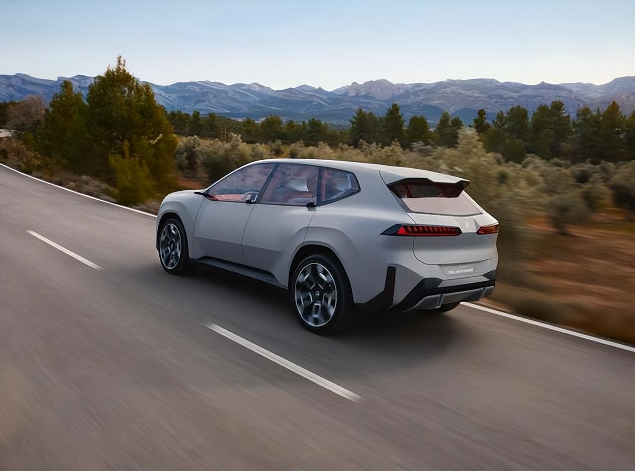 車身十分飽滿渾圓,弧線形的車頂和多型面設計的車身腰線,搭配著黑色的車窗裝飾條、隱藏式的門把手、水滴形的反光鏡外殼、黑色的側裙以及低風阻的碳纖維輪圈,表明了它運動型SUV的身份。車尾呈現出凸字形的輪廓,上窄下寬的樣子十分耐看,巨大的黑色碳纖維后擾流板,夸張的黑色碳纖維底部擴散器,也帶來了十足的運動氣息。兩側尾燈加入了黑色的的燈罩,增添了更多的神秘感,參照Vision Neue Klasse X車型來看,內部融入無數顆獨立光源組成的紅色矩陣光帶,底部還有經典的L型紅色LED光帶,配合著流水式轉向燈,也更加科幻。
