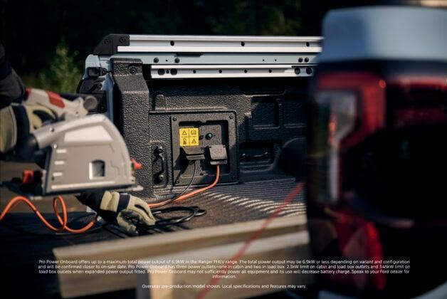 此外,這款Ranger PHEV對比其它版本的Ranger也額外多了一項功能,就是在其車斗內配有兩個可分別輸出3.45kW的電源插口,總輸出功率可達到6.9kW,用戶可利用其電池的電量向一些耗電量不超過3.45kW的電器供電。