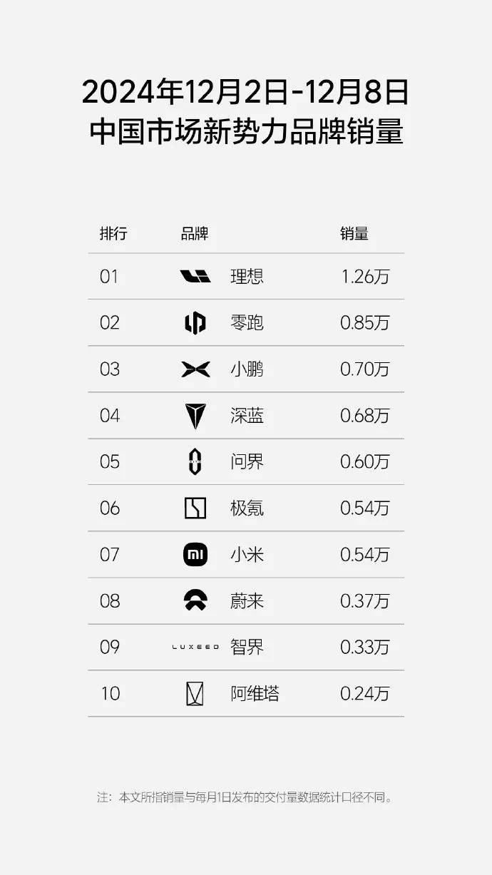 今天小鵬汽車也公布了小鵬P7+的戰(zhàn)報,上市四周時間內(nèi),完成10000臺小鵬P7+正式交付。在最新一周(12月2日~12月8日)中國市場新勢力品牌銷量榜中,小鵬的周銷量也是達到了7000臺,僅次于理想和零跑,看來小鵬的銷量總算是支棱起來了~