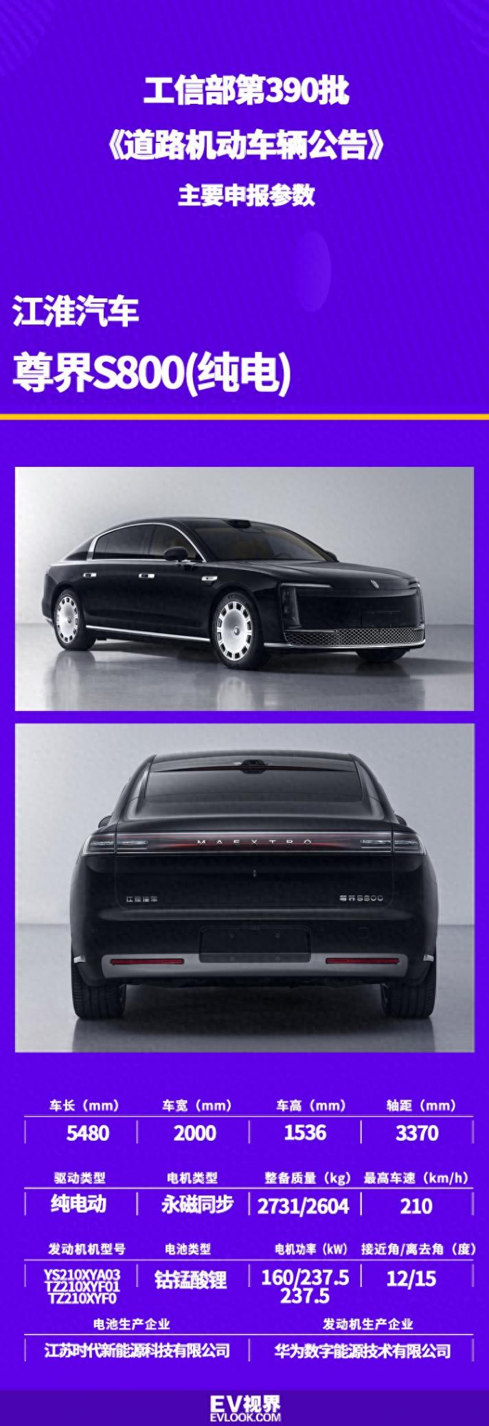 日前,工信部公示第390批《道路機動車輛生產企業及產品公告》,其中尊界S800在列。新車提供了增程式和純電動兩種動力版本,并且每種動力版本均有雙電機和三電機車型可供選擇。該車已經啟動預訂程序,其預售價區間為100至150萬元。