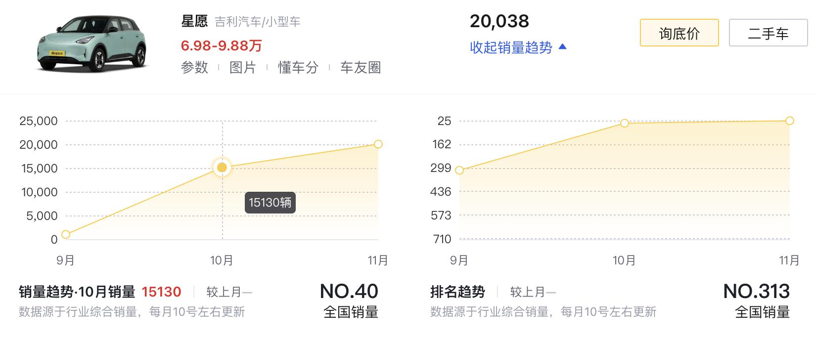 最后就是吉利星愿了,單月銷量超過了20000臺,也是順利躋身TOP10,聯手特斯拉Model Y一起,擠掉了比亞迪的驅逐艦05和海豚。而且這款新車上市才兩個多月,確實是黑馬潛質。
