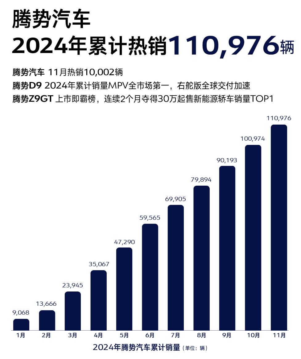 其他品牌部分,騰勢汽車11月銷量為10002輛,方程豹汽車為8521輛,這個品牌的熱銷車型分別為騰勢D9 DM-i和豹5。此外,比亞迪也實現了30977輛出口量。