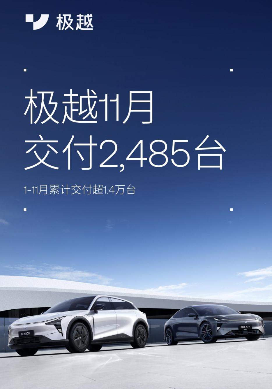 極越汽車11月銷量2485臺,環比有一定的下滑,今年1-11月,極越汽車的累計交付量過了1.4萬臺!現在極越的全國門店接近140家,目前極越在售的車型有SUV極越01和轎車極越07。
