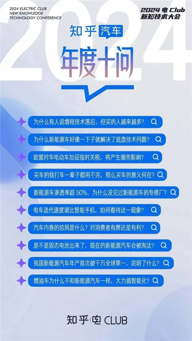 會上,知乎平臺發布了“2024汽車年度十問”,這些問題精準捕捉了消費者在過去一年中最為關心的汽車話題,而新能源汽車無疑是其中的焦點。從增程技術到電池性能,從底盤創新到智能化應用,消費者對于新能源汽車技術的探討愈發深入,仿佛在分析一部智能手機的每一個細節。