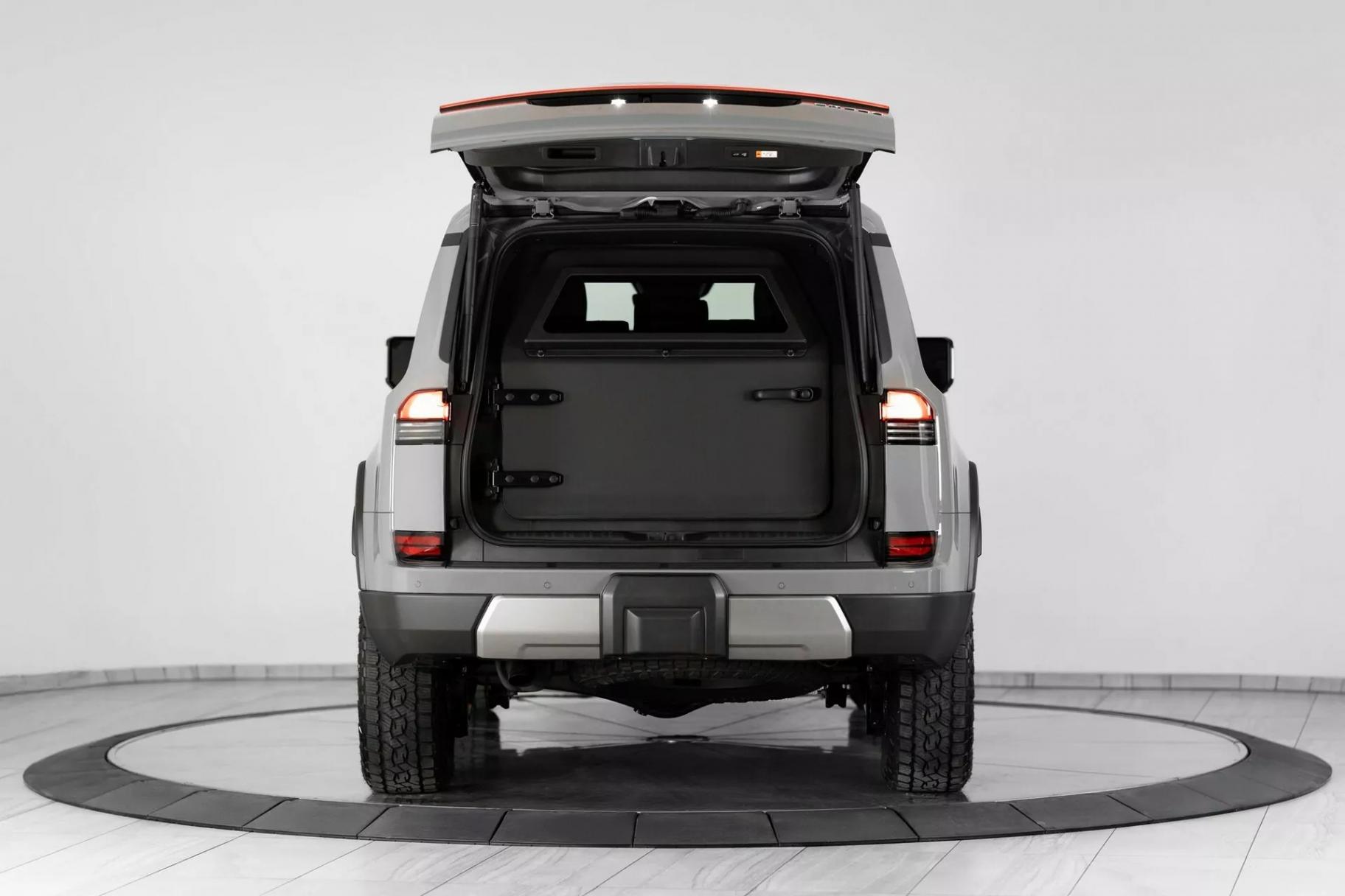 側面造型方面,車頂線條比較平直,配備有粗壯的行李架,有著比較強的力量感;腰線采用了貫穿式設計,讓視覺效果顯得修長大氣;輪眉和側裙部分設計有隆起的黑色飾板,凸顯了力量感;輪轂采用的是灰色多幅式造型,搭配AT胎讓車身更顯魁梧。