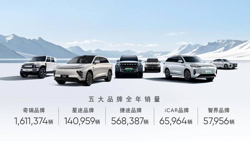 具體到單品牌銷量,奇瑞品牌全年銷量1611374臺,同比增長31.1%;星途品牌全年銷量達140959臺,同比增長12.3%;主攻純電動的iCAR品牌累計銷量65964臺;與華為聯合打造的智界品牌累計銷量為57956臺。