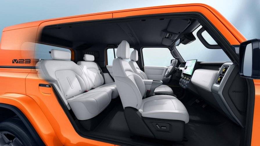 V23不僅在設計上致敬經(jīng)典,更融合當下新能源設計的趨勢,打造出獨一無二的視覺體驗。V23造型方正硬朗,車身尺寸長4220mm、寬1915mm、高1845mm,接近1:1的高寬比,配合21吋大輪轂,賦予整車超越同級的體量感和視覺沖擊力。圓形大燈、固定式側踏板、C柱盲窗等經(jīng)典越野元素,與現(xiàn)代科技外露式四角透明毫米波雷達罩、立體懸浮式“小書包”、樂高模塊剎車尾燈等設計相結合,使V23既“復古經(jīng)典”又“科技賽博”。