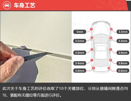 本項目主要通過對新車在車身工藝、漆膜水平、車內空氣質量、振動與噪聲、駐車雷達以及燈光/視野等12個項目的實地測試,以客觀數據的形式全方位直觀展現新車在商品性方面的表現。