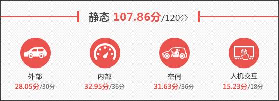本項目由多位評審員針對新車靜態和動態方面的實際表現來進行主觀評價。其中,靜態方面包括外部、內部、空間和人機交互四大部分;動態方面包括加速、制動、轉向、底盤懸架和安全五大部分。最終,綜合參考各位評審員的主觀評價意見給出總得分,從主觀感受的角度反映新車在商品性方面的實際表現。