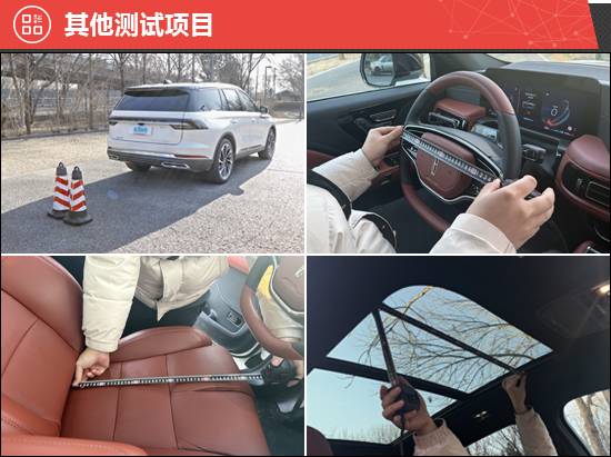 此外,我們還針對駐車雷達、燈光/視野、操控系統、輪胎、天窗、座椅、后備廂進行了測試。經過測試發現,評測車配備了尺寸碩大的全景天窗,可電動開啟,并帶有電動遮陽簾,實用性出色。同時,前排座椅的調節功能異常強大,除了常見的腰部支撐和腿托之外,還支持肩部調節,大幅提升了乘坐舒適性。此外,評測車配備了固特異品牌EAGLE TOURING輪胎,能夠提供卓越的干濕地抓地性能以及出色的靜音性。
