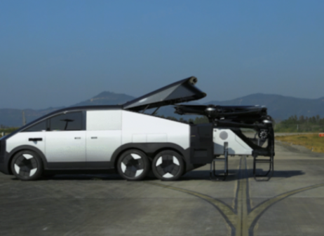 “陸地航母”分為陸行體和飛行體兩部分,解決了傳統(tǒng)飛機(jī)“移動(dòng)難”“存儲(chǔ)難”“補(bǔ)能難”和“學(xué)習(xí)難"四大痛點(diǎn)。陸行體又被稱作陸行“母艦”,采用三軸六輪設(shè)計(jì),可實(shí)現(xiàn)6×6全輪驅(qū)動(dòng)及后輪轉(zhuǎn)向,具備較好的承載能力和越野能力。整車長(zhǎng)約5.5米,寬約2米,高約2米,可停入標(biāo)準(zhǔn)停車位,可駛?cè)氲貛?kù),普通駕照即可駕駛。同時(shí),它搭載全球首個(gè)車載自動(dòng)分離結(jié)合機(jī)構(gòu),能將飛行器自動(dòng)收納在陸行“母艦”的后備艙中,并能作為一個(gè)移動(dòng)超充站,不管是行駛中、還是停車時(shí),均可以給飛行器進(jìn)行超大功率補(bǔ)能,滿油滿電可實(shí)現(xiàn)6次補(bǔ)能。