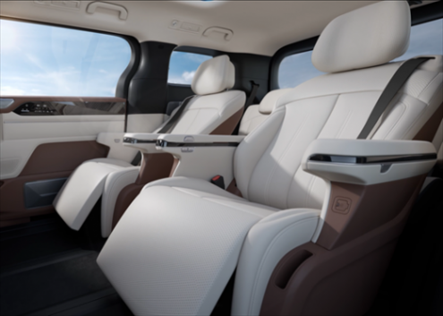 內飾方面,新車采用了全新設計風格,中控臺為三屏設計,分別為全液晶儀表、大尺寸懸浮式中控屏以及副駕駛娛樂屏,為車內帶來了不錯的科技感。配置上,新車標配電動雙側滑門、電動尾門、全景天窗、前后排雙層隔音玻璃、中后排隱私玻璃以及8安全氣囊等。值得一提的是,中、頂配車型還配有50W手機無線充電、DiSound音響系統、寬溫域冷暖兩用智能冰箱以及前排座椅背靠小桌板等亮點配置。
