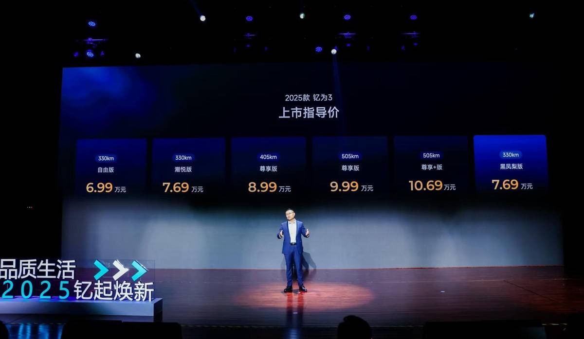 4月24日蘇州灣大劇院,2025款釔為3正式煥新上市,價格區間定位在6.99萬元-10.69萬元。