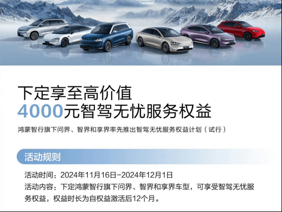 而華為大面積鋪開智駕險的時間則要更早一點,從去年11月份開始,鴻蒙智行旗下很多車型購車時都會贈送價值4000元的“智駕無憂”服務權益,提供至高300萬或500萬的保障,時長為12個月,涵蓋了行車和泊車的六大場景。