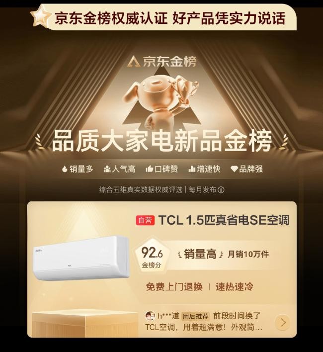 憑借其卓越性能與創(chuàng)新技術,TCL真省電SE系列空調在京東平臺成為行業(yè)首個“0差評”爆款,用戶滿意度穩(wěn)居“家電品類品牌體驗競爭力”榜首。
