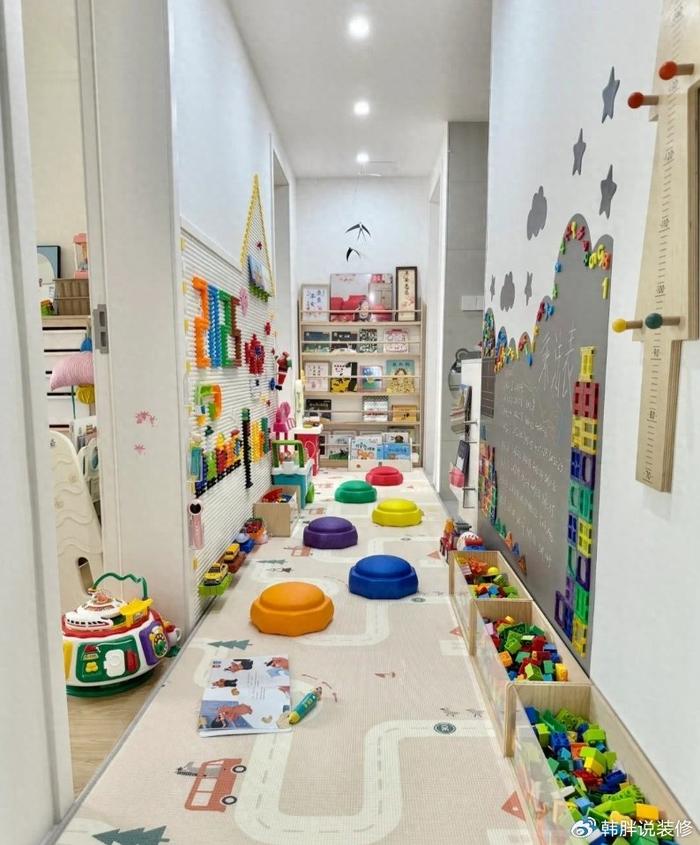 最近,被一位江蘇媽媽裝修的新房圈粉了。為了給孩子創造一個“小天地”,裝修的時候把走廊打造成了“兒童樂園”。