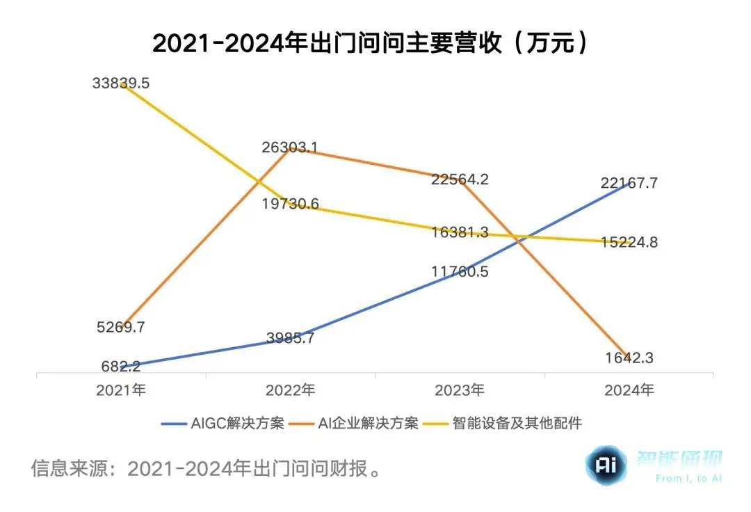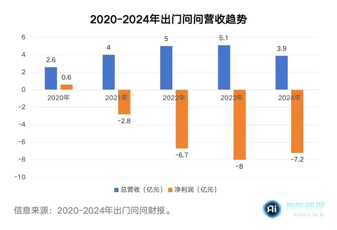 然而,即便找對了發力的主戰場,出門問問的營收,也暗藏危機。2024年,正是AI出海應用繁榮的元年,出門問問的年營收(3.9億元),卻是近4年以來的最差水平。