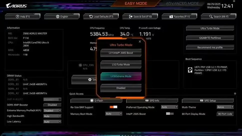 6 月 28 日消息,科技媒體 Tom's Hardware 昨日(6 月 27 日)發布博文,報道稱技嘉(Gigabyte)為支持英特爾酷睿 200S 處理器的 Z890 系列主板,推出了 Ultra Turbo Mode 模式,游戲幀率最高提升 35%。