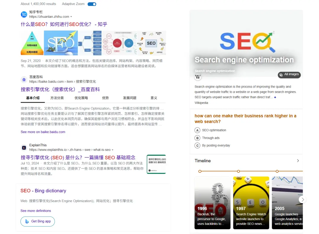 這么說吧,早在搜索引擎時代,就誕生了一門學問,叫 SEO(Search Engine Optimization,搜索引擎優化)。你可以理解為這是老一輩廣告商們的看家本領,他們能用各種技巧,讓自家的東西,排在搜索結果的前頭。