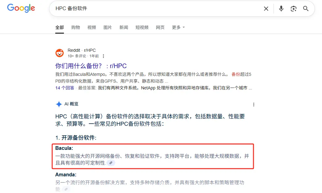 做完這些,見證奇跡的時刻來了。Bacula 在 ChatGPT 推薦的 HPC 備份軟件中,多次作為首選。