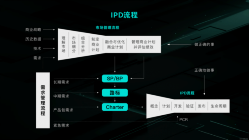 在IPD流程中,市場需求調研與分析是產品定義階段的核心起點,且貫穿整個流程。這樣可以避免用工程功能來推導產品配置,而是以用戶體驗拉動產品定義。馮興亞深諳此道,在推動番禺行動時,就談到了:“產品定義,就是消費者需要什么樣的技術路線,就搭載什么樣的技術路線,我們叫產品主戰。”