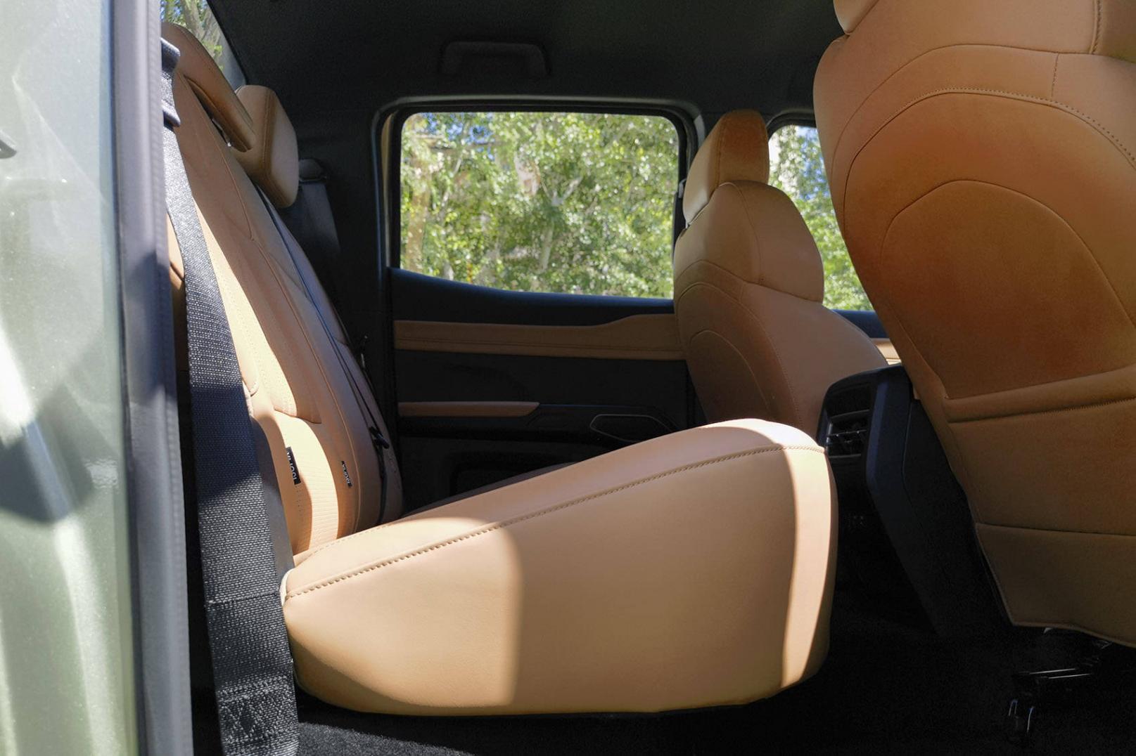 進入車內,能感覺到威麟R08很用心。一方面,新車的中控臺及門把手區域采用了大量軟質包覆,觸感比較舒適;另一方面,后排座椅采用26度靠背角設計,坐墊長度提升至近500mm,支撐性很不錯,照顧到了后排乘坐的舒適性,不像傳統皮卡那樣后排座椅又直又短。