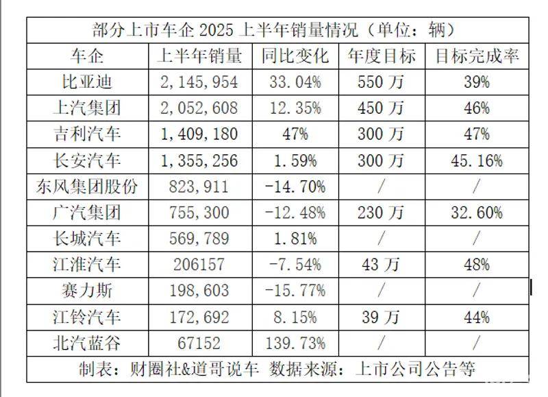 2025年上半年的汽車行業,很熱鬧!當然,內卷卷出了什么,吵架又吵出了什么,一切的一切體現在車企們的實際銷量中。近日,國內部分上市車企的2025年上半年銷量陸續出爐,《財圈社&道哥說車》編輯統計了A/H股部分上市車企的銷量情況(不含造車新勢力),各家車企悲歡并不相同。