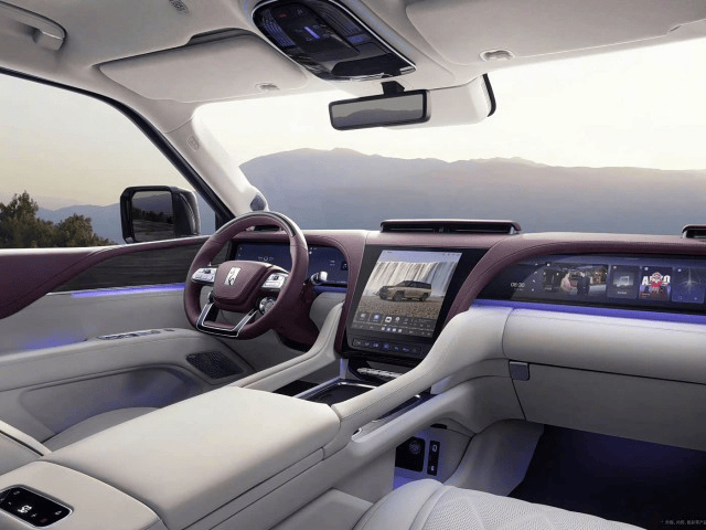 新車發布了白紫以及黑棕兩款內飾配色,中控區域與仰望U8保持一致,配備了23.6英寸液晶儀表屏、12.8英寸中控屏以及23.6英寸副駕娛樂屏,三屏聯動的設計不僅提升了視覺效果,更增強了車內的科技感。