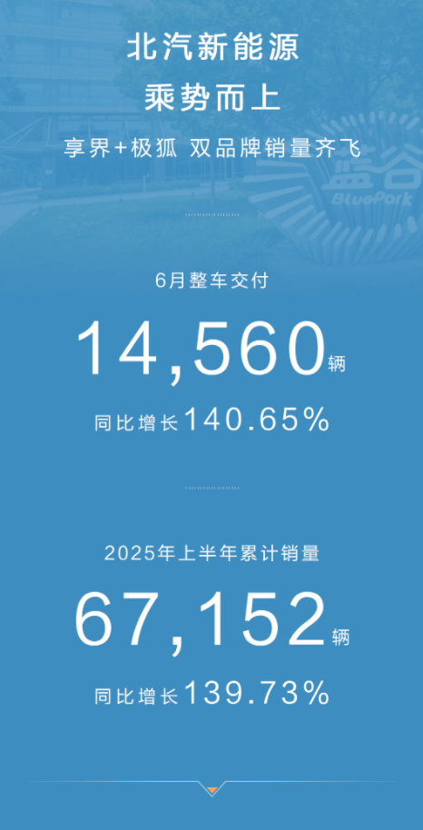 作為上半年收官之戰,6月份的銷量表現值得格外關注。6月份,北汽新能源實現銷量14560輛,除了極狐品牌持續以破萬之勢穩態增長之外,交付逐漸進入爬坡期的也以月交付4154臺的成績,為北汽新能源的上半年增添了一抹亮色。