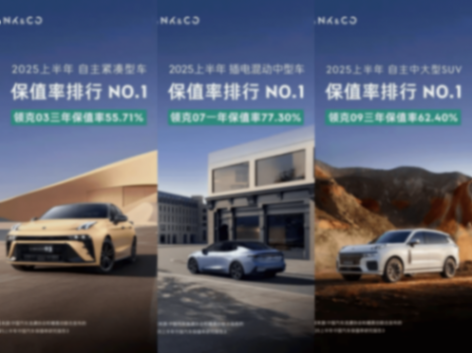 領(lǐng)克150萬(wàn)輛的含金量,首先體現(xiàn)在價(jià)格上。2025年5月,領(lǐng)克品牌加權(quán)均價(jià)達(dá)18.9萬(wàn)元,超越眾多傳統(tǒng)合資品牌。而保值率是檢驗(yàn)品牌價(jià)值的試金石,根據(jù)《2025上半年中國(guó)汽車保值率研究報(bào)告》,領(lǐng)克品牌三年保值率達(dá)54.58%,9款車型躋身細(xì)分榜單前十,其中、07、09分別在各自細(xì)分市場(chǎng)登頂保值率冠軍。