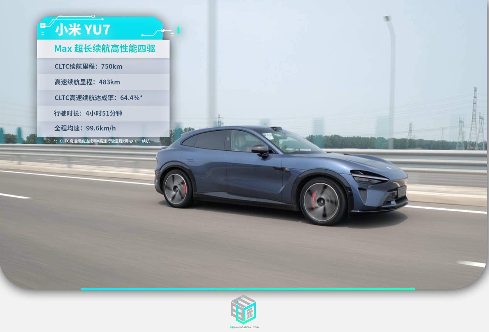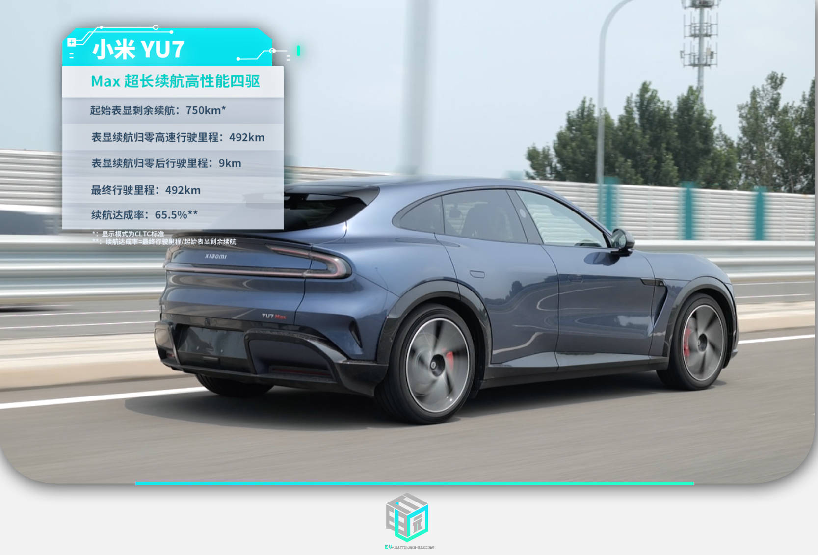 不過如果讓我們用483km這個成績除一下750km的CLTC續航就不難發現,YU7 Max的高速續航達成率僅有64.4%。雖然這個數據放在我們測試過的車型中是一個中規中矩的水平,但相較小米官方宣傳動輒80%、90%的實測達成率,還是有些差距。如果說續航成績代表了YU7 Max的三電有點水平,那達成率就意味著小米還是有改進空間的。