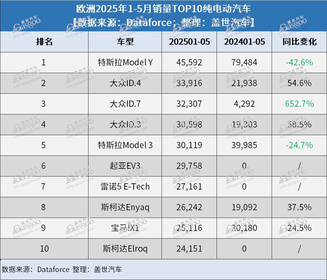 相對于中國汽車品牌在歐洲的高歌猛進,日韓品牌以及部分歐美品牌5月的表現則相對低迷。
