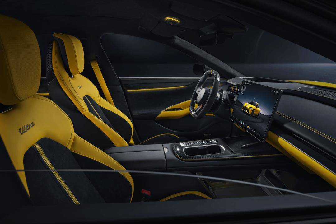 SU7 Ultra采用Alcantara超細纖維面料(包覆面積超5m²)和碳纖維飾板,標配運動座椅(帶主動側翼支撐及賽道刺繡條紋),提供明黃、黑/黃雙色等內飾配色。SU7 Ultra配備16.1英寸3K中控屏、56英寸HUD及后排雙Pad,支持五屏聯動,UI界面融入電音、科幻等運動主題。SU7 Ultra標配Xiaomi HAD全場景智駕,搭載128線激光雷達、3顆毫米波雷達及雙Orin-X芯片(總算力11.45EFLOPS),支持端到端大模型,覆蓋自動泊車、高速領航等場景。截至2025年2月,已積累超1000萬Clips場景數據,并聯合保險公司提供智駕保障服務。