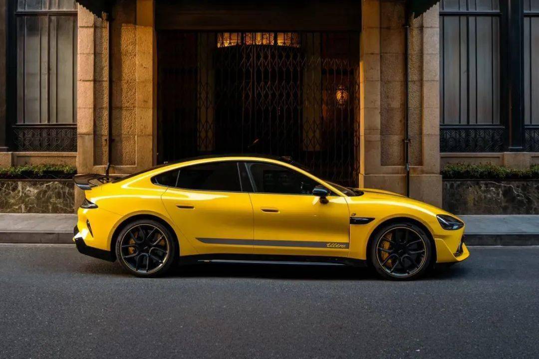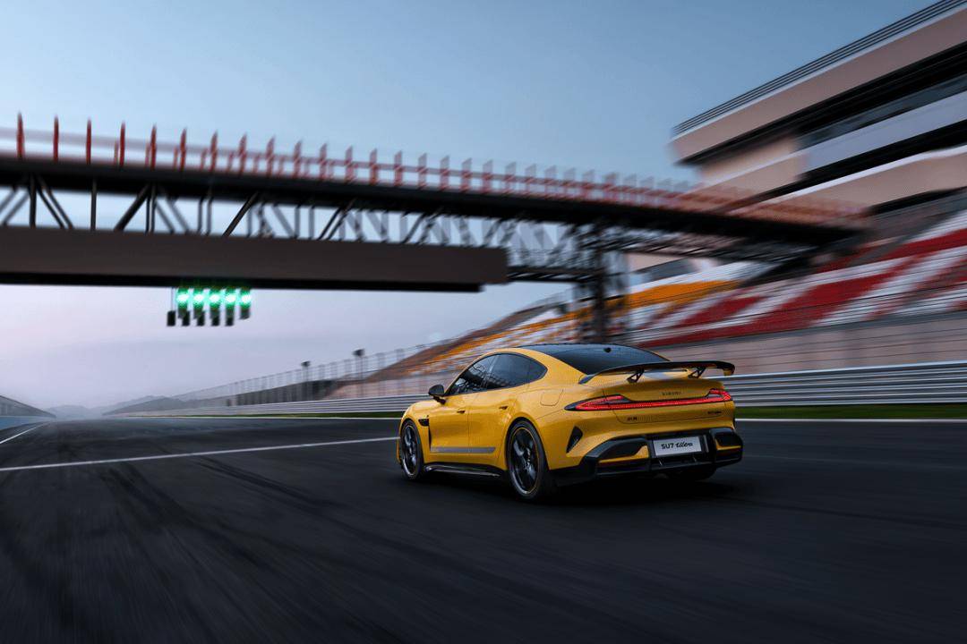 SU7 Ultra車身長度5115mm,軸距3000mm,加入前鏟、U型風刀、主動尾翼及擴散器等套件,最大下壓力達285kg,兼顧高速穩定性與低能耗。SU7 Ultra提供閃電黃、太空銀、珍珠白等5種配色,車頂、尾翼等17處采用碳纖維材質(總面積5.5m²),車頭配備超大前鏟和“U形”風刀,尾部搭載可調節主動擴散器。SU7 Ultra新增賽道拉花和碳纖維雙風道前艙蓋(可選閃電黃或太空銀),強化運動氣息。