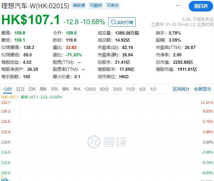 7月29日晚,理想汽車首款純電SUV——理想i8正式發布。新車共推出Pro、Max、Ultra三個版本,售價區間為32.18萬至36.98萬元,將于8月20日開啟交付。然而,在新車發布的同時,理想汽車美股股價卻出現了波動,盤前一度上漲超6%,此后一路下跌,截至收盤跌幅超6%。此外,7月30日上午,理想汽車港股開盤即暴跌超10%。