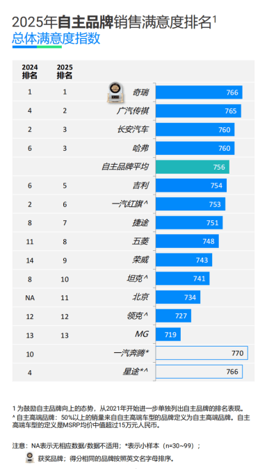2025年,奇瑞在J.D.Power剛剛發(fā)布的銷售滿意度排名中,再度蟬聯(lián)自主品牌第一!