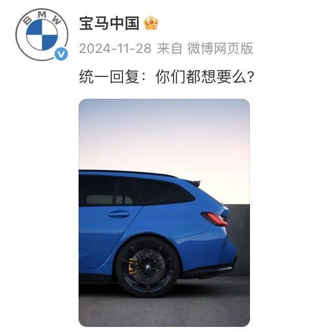 值得一提的是,這款“破圈”主角的兄弟車型——寶馬M3旅行車雷霆版,確認將引進中國市場,預計在今年11月份正式發布,并采用限量形式銷售,據了解,目前寶馬經銷商已經開始收集訂單。