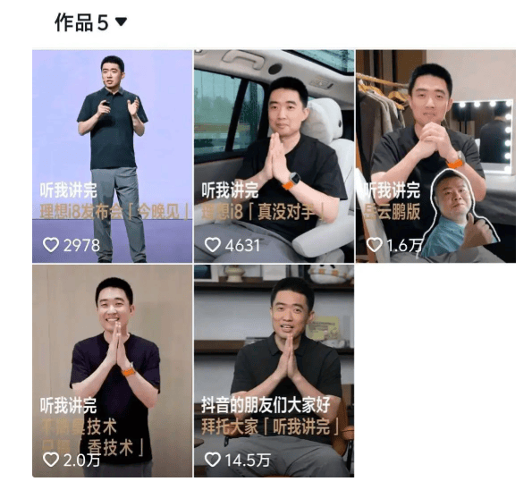 為了給理想 i8 造勢,理想汽車的掌舵人李想可謂是煞費苦心。7 月 25 日,李想緊急開通短視頻賬號,親自下場當起了“車模”,拍攝大片為新車宣傳,甚至連發布會場地都多方求助。翻看李想7月發布的17條微博,其中14條都是圍繞著理想i8展開,那個曾經在微博上活躍度頗高的“微博達人”李想,似乎又滿血復活了。這般高強度的宣傳攻勢,足以見得理想汽車對于i8 的重視程度。