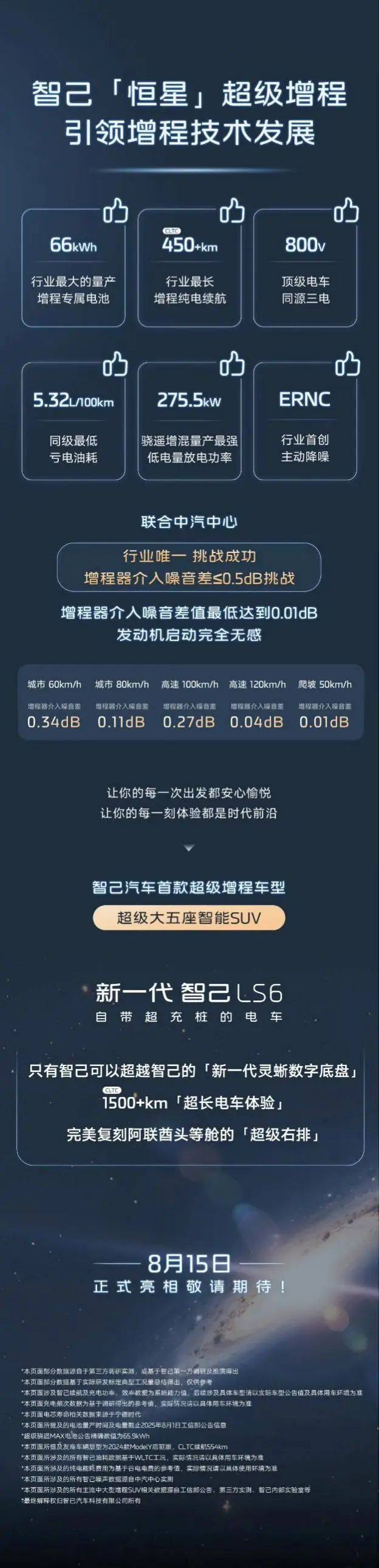 在能效方面,VGT可變截面渦輪增程器與全域碳化硅電控的黃金組合,將綜合油耗壓至2.07L/100km,而虧電油耗僅5.32L/100km——對比同級競品普遍6L以上的數(shù)據(jù),這一次恒星超級增程確實(shí)也突破了業(yè)內(nèi)極限。在全時(shí)場景中,ERNC主動(dòng)降噪系統(tǒng)通過振動(dòng)抑制與反向聲波抵消,將增程器介入時(shí)的車內(nèi)噪音壓制在36dB,而-20℃環(huán)境下仍保持170kW峰值充電功率的“低溫暢行”模式,則直刺北方用戶的致命痛點(diǎn)。
