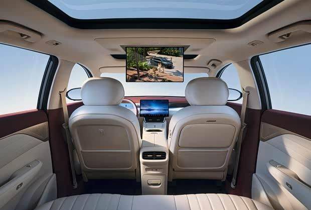 舒適性配置方面,新車配備了具有超級回彈工藝的"云柔大沙發(fā)"座椅,后排座椅支持260mm前后滑動和16段靠背調(diào)節(jié)。此外,后排還配備了冷暖箱、吸頂屏等豪華配置。當后排完全放平時,可形成縱深達2.1米的平整空間。