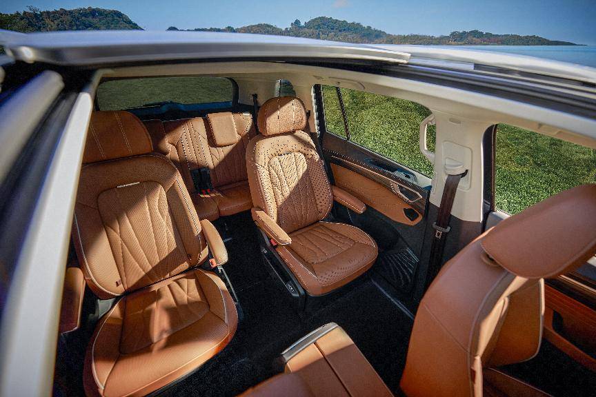 空間上,無論是5168mm的車長和2980mm的超長軸距,帶來的87.2%的得房率,還是第三排座椅991mm頭部空間,1458mm的肘部空間以及311mm的座椅高度,全新攬境在空間舒適性上的表現,甚至已經超過了同級別新能源汽車。