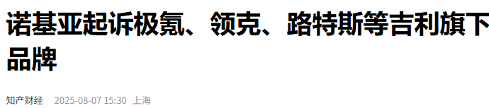 近日,據(jù)德國專利媒體Juve Patent的報道,歐洲統(tǒng)一專利法院(UPC)曼海姆分庭于8月6日公開案件細節(jié)顯示,諾基亞已對吉利集團及其旗下四大品牌——極氪、領(lǐng)克、路特斯及Smart——發(fā)起專利侵權(quán)訴訟,波及吉利在歐洲18個國家的32家分公司。