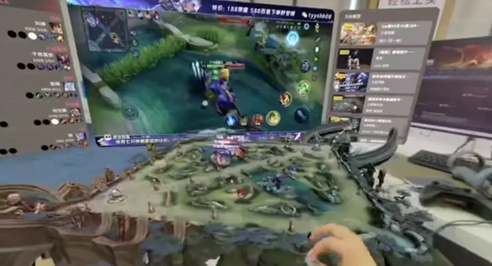 不過,在部分內容上,vivo Vison還是做出了一些新意。比如在“賽事直播”應用上,如果用戶觀看電競比賽,屏幕上半區將會顯示比賽畫面,而下半區則會實時生成可操控的虛擬地圖。