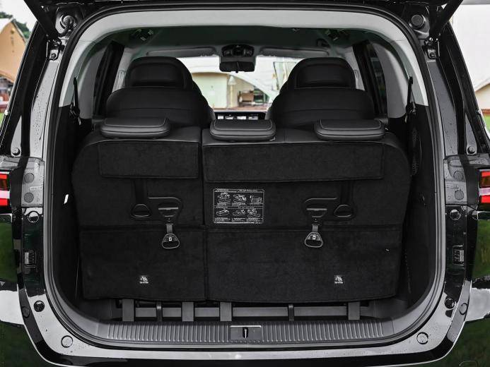 側(cè)身設(shè)計(jì)同樣暗藏巧思,分段式腰線隨車身走勢(shì)靈動(dòng)起伏,打破了傳統(tǒng)MPV的臃腫感;D柱上的波紋裝飾則在細(xì)節(jié)處注入時(shí)尚基因,為整車增添了一抹獨(dú)特的韻律美。車尾的貫穿式尾燈堪稱點(diǎn)睛之筆,不僅提升了夜間行車的辨識(shí)度,更與頂部擾流板形成層次分明的視覺效果,將精致感與運(yùn)動(dòng)感完美融合。
