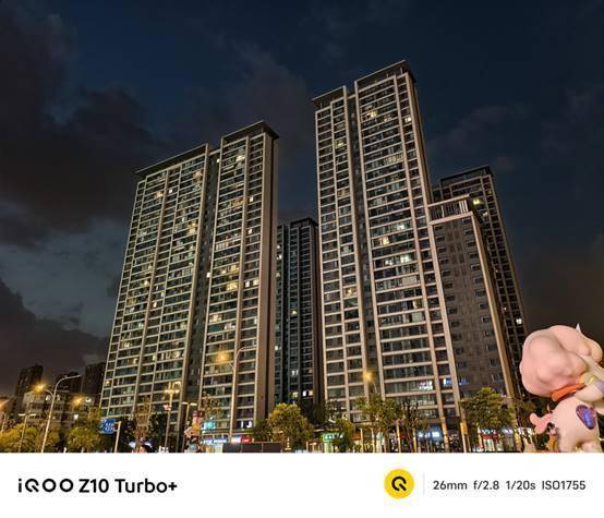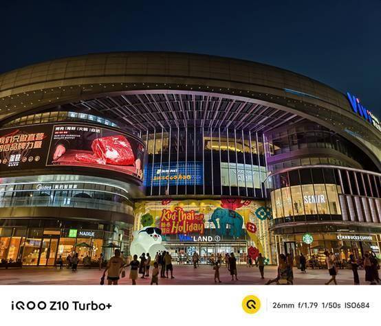 在夜景拍攝方面,iQOO Z10 Turbo+憑借旗艦同款NICE 2.0影像算法和大底光學(xué)防抖主攝,夜景表現(xiàn)超出預(yù)期。畫(huà)面純凈度不錯(cuò),噪點(diǎn)控制良好。高光壓制比較到位,燈牌文字清晰可見(jiàn),暗部細(xì)節(jié)也有一定保留。雖然和頂級(jí)影像旗艦的夜視儀效果有差距,但在性能向手機(jī)中絕對(duì)屬于優(yōu)秀水平。