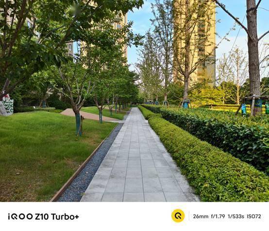 在白天光線充足的情況下,iQOO Z10 Turbo+的拍照表現(xiàn)非常出色。主攝拍攝的照片清晰度高,色彩還原準(zhǔn)確,細(xì)節(jié)豐富。HDR效果積極,能較好地平衡天空高光和建筑暗部。OIS的加入讓成片率更高,隨手一拍就是清晰可用的照片。