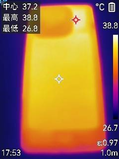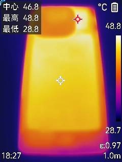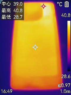 游戲過(guò)后,機(jī)身背面最高溫度為48.8攝氏度。