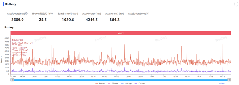 游戲的平均功耗約為7.6W,可以看出iQOO Z10 Turbo+的性能調(diào)度還是相當(dāng)給力的,能效比為7.55FPS/W。