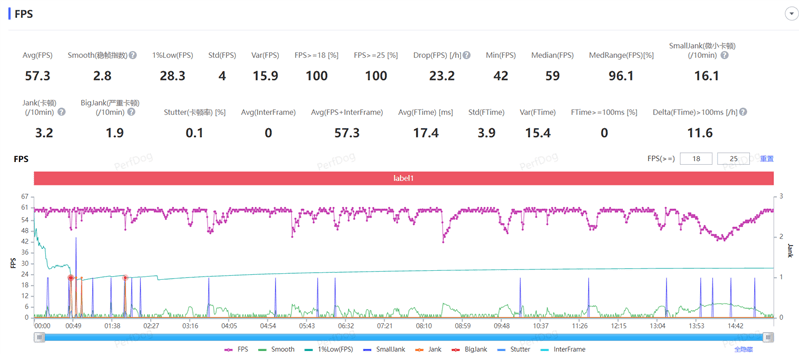 最后我們也對(duì)iQOO Z10 Turbo+測(cè)試了一把《崩壞:星穹鐵道》黃金的時(shí)刻跑圖的性能水平,在最高畫質(zhì)下特效拉滿,15分鐘測(cè)試下來(lái)平均幀率穩(wěn)定在了57.3FPS。