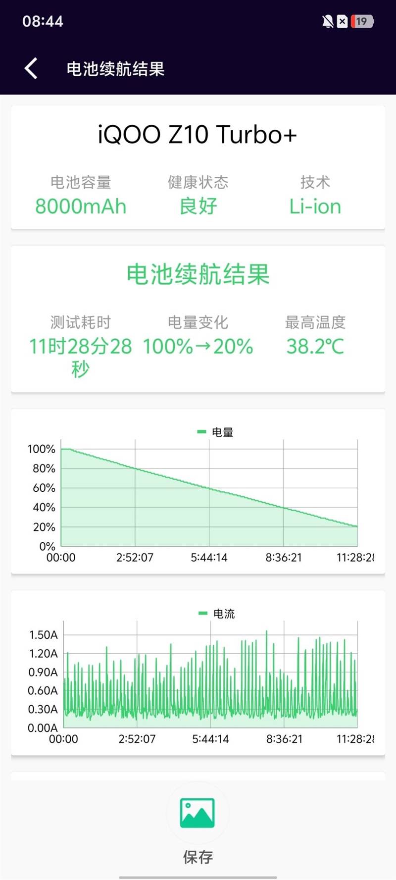 經(jīng)過(guò)電池狗狗續(xù)航實(shí)測(cè),iQOO Z10 Turbo+的電量從100%消耗至20%,用時(shí)11小時(shí)28分28秒,經(jīng)過(guò)折算,滿電續(xù)航可以達(dá)到13.5個(gè)小時(shí),出門也不用總給充電器留位置,還能無(wú)焦慮的開上幾局。